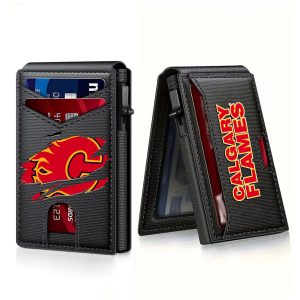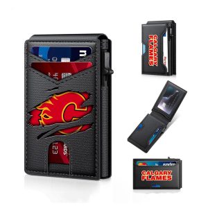 Customize Your Name With Calgary Flames Blocking Pop Up cardholder, Fashion Card Case Wallet