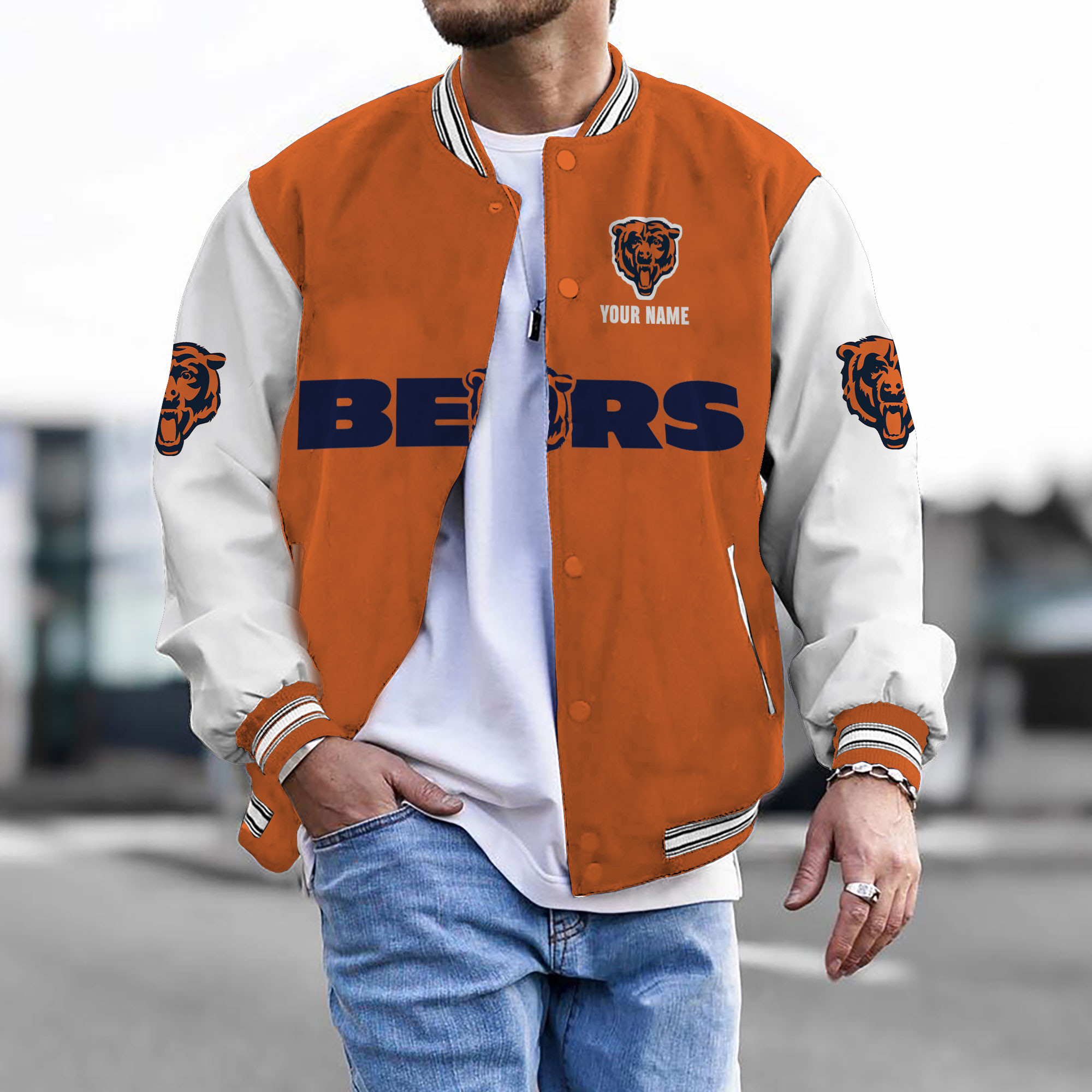 Customize Your Name With Chicago Bears Button Down Baseball Varsity Bomber Jacket ver 2