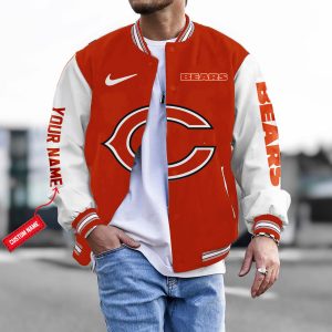 Customize Your Name With Chicago Bears Button Down Baseball Varsity Bomber Jacket ver 2