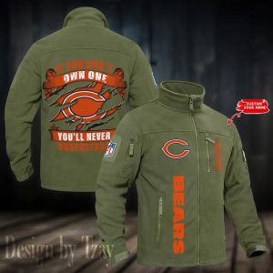 This made-to-order jacket allows you to add YOUR NAME right on the design, making it truly one-of-a-kind. Featuring a sleek stand collar, high-quality zipper, and rugged Chicago Bears design, it’s built for performance while keeping you stylish in any environment.
