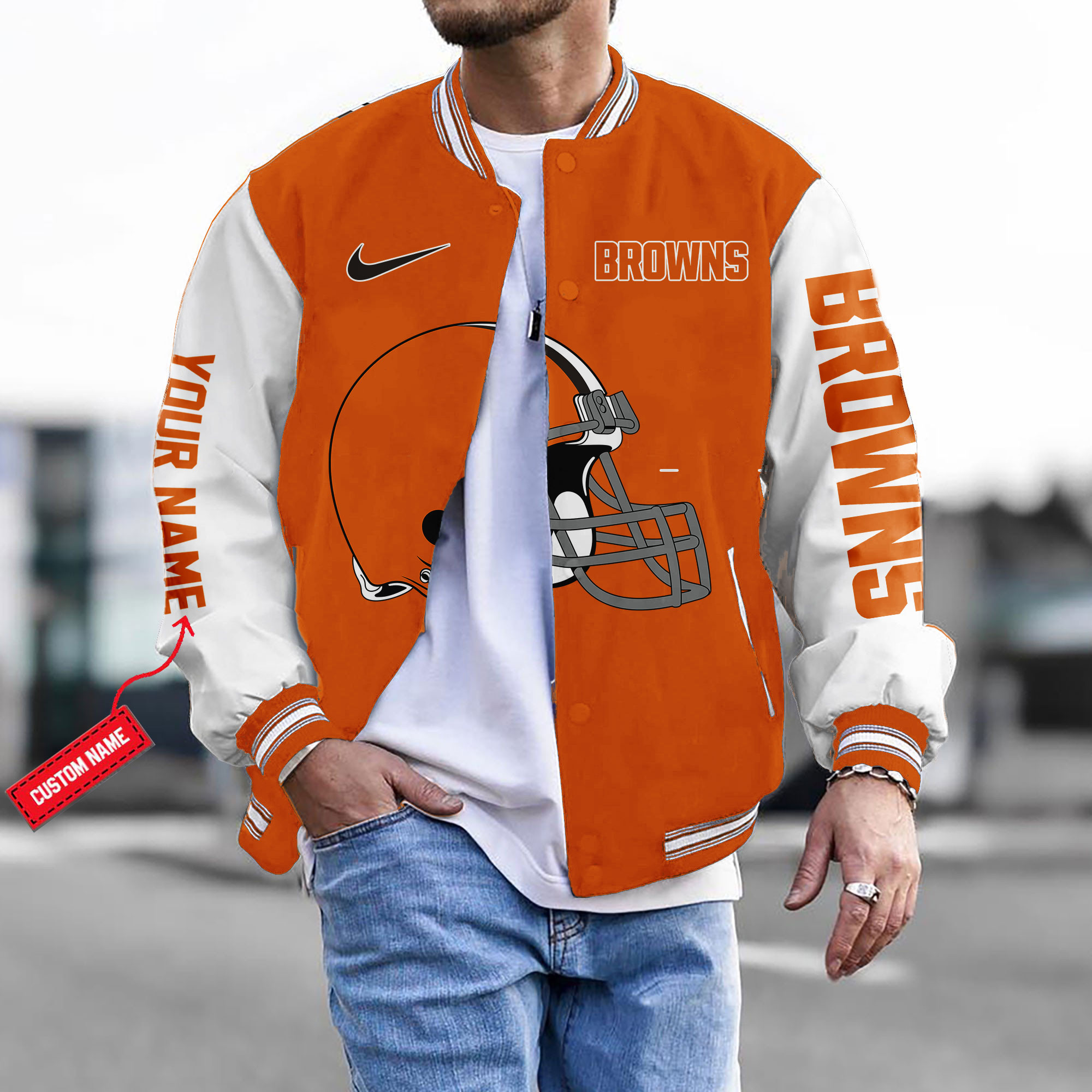 Customize Your Name With Cleveland Browns Button Down Baseball Varsity Bomber Jacket ver 2