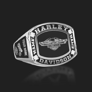 Harley Davidsion Ring, which is indispensable accessories of daily life today, adorn our fingers with many model options. With its confident design and stance in your hand, it will be your indispensable piece and will turn into a personal touch that’s perfect for any look. Our Bold Name Ring is crafted with a thick yet light-weight design, perfect to add to your daily rotation. The Harley Davidsion Emblem on the ring makes it a perfect item for any Harley Davidsion Lovers!