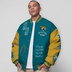 Hi there!! Are you looking at our Jacksonville Jaguars Bomber Jacket. These bombers Jacket are unique, made with love, and they are perfect accessories for your outfit. The Jacksonville Jaguars Emblem on the shoes makes it a perfect item for any Jacksonville Jaguars Lovers.