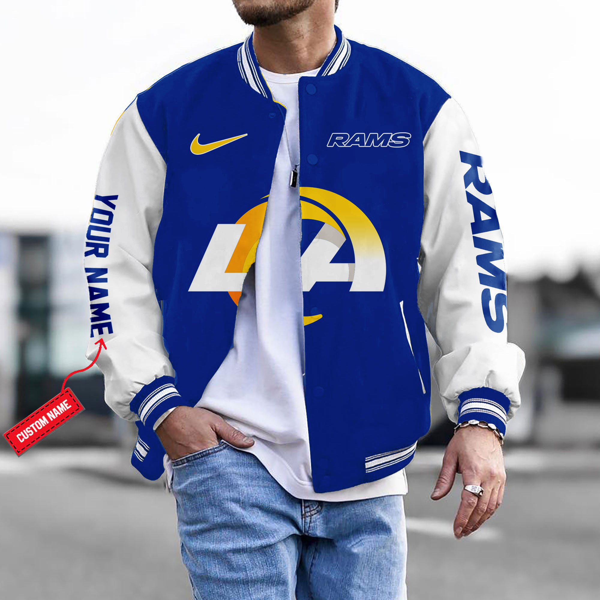 Customize Your Name With Los Angeles Rams Button Down Baseball Varsity Bomber Jacket ver 2