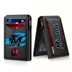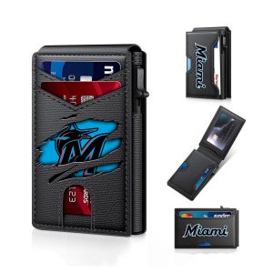 Customize Your Name With Miami Marlins Blocking Pop Up cardholder, Fashion Card Case Wallet