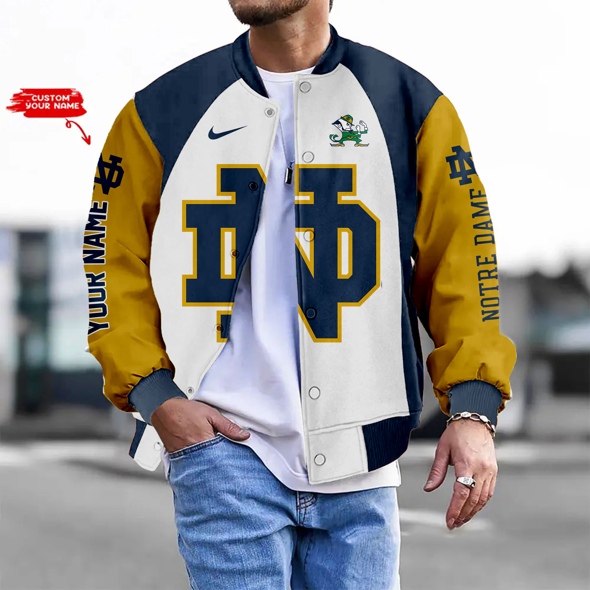 Customize Your Name With Notre Dame Fighting Irish Button Down Baseball Varsity Bomber Jacket NCAA