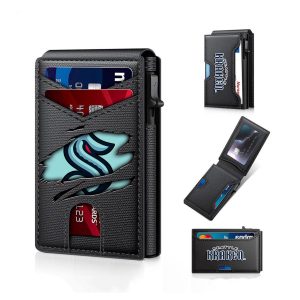 Customize Your Name With Seattle Kraken Blocking Pop Up cardholder, Fashion Card Case Wallet