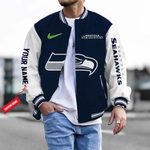 Customize Your Name With Seattle Seahawks Button Down Baseball Varsity Bomber Jacket ver 2