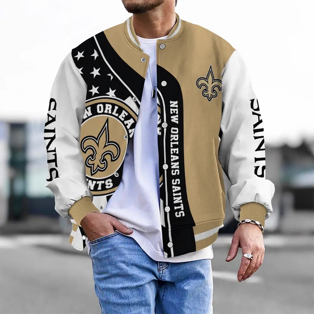 Crafted from premium materials with a button-down baseball varsity design, this jacket offers both style and comfort. Whether you’re cheering for your team or just showing off your New Orleans Saints pride, this piece will make you stand out wherever you go.