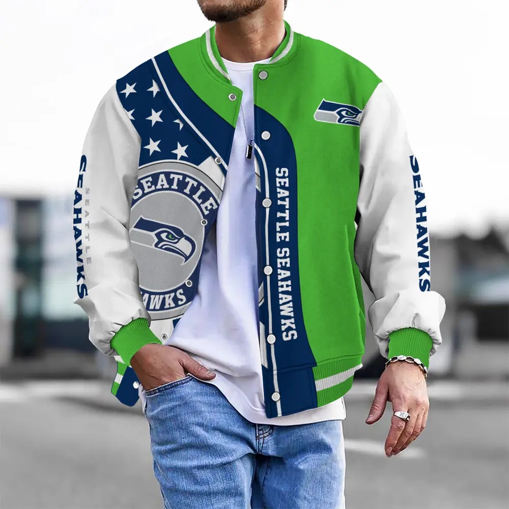 Crafted from premium materials with a button-down baseball varsity design, this jacket offers both style and comfort. Whether you’re cheering for your team or just showing off your Seattle Seahawks pride, this piece will make you stand out wherever you go.